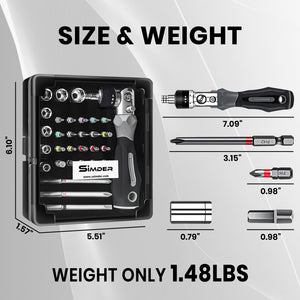 This 30-in-1 screwdriver set adopts alloy ratchet adapter, which is smooth, powerful and durable. With the three-position ratchet design, you can easily and freely rotate the handle, tighten the screws left and right, and lock the direction in the center. The handle is made of anti-slip material, making the operation flexible and easy.